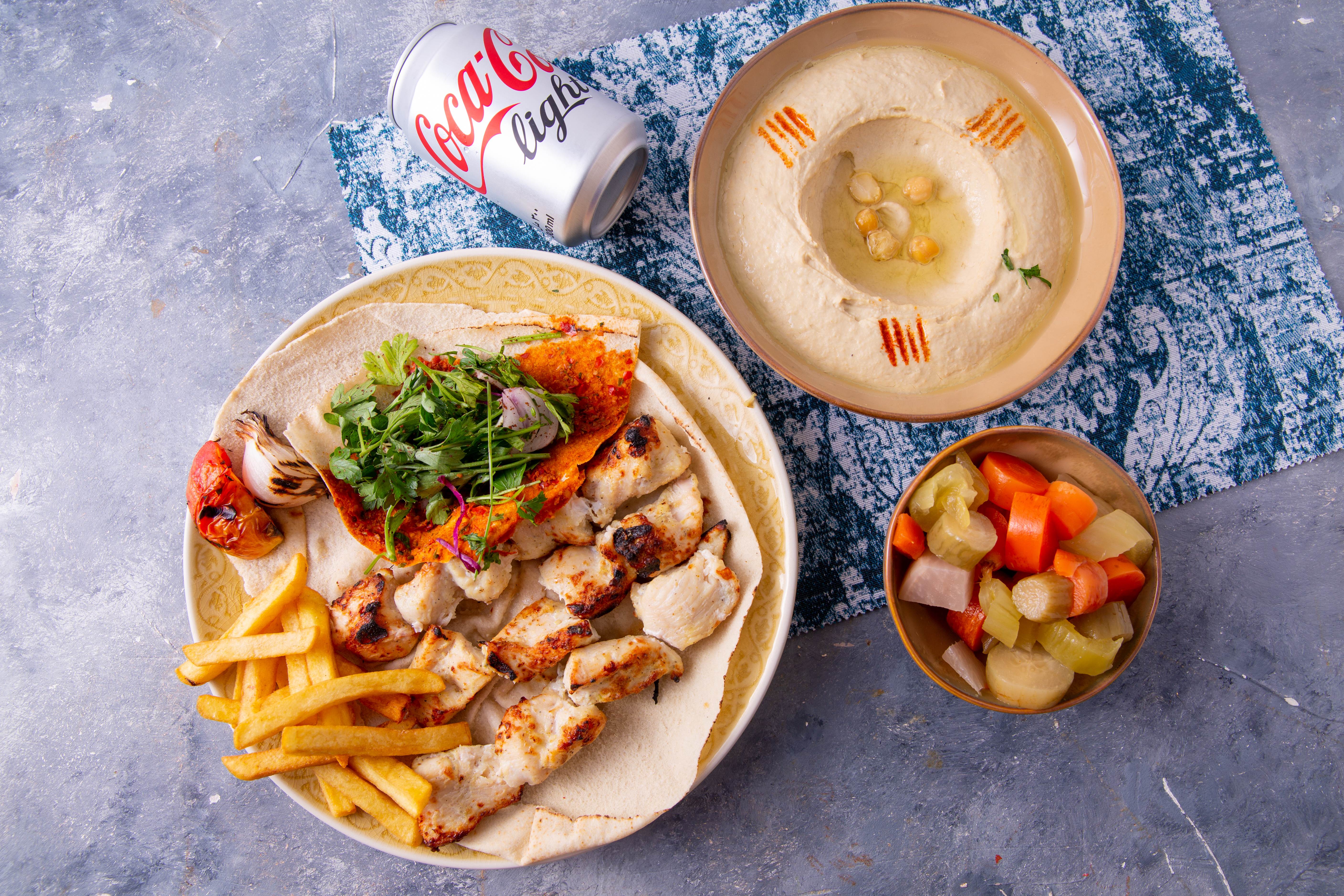 ChickenSoup.jpg Laban.jpg MuhammaraKashkavalCheeseManakish.jpg New Images/ OuziChickenwithOrientalRice.jpg Route Beirut/ ShishTawookCombo.jpg TawookWrap.jpg